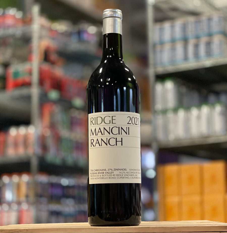 "Ridge's 2021 Mancini Ranch, 73% carignane and 27% zinfandel, is a heady, explosive wine. Super-ripe red cherry fruit, rose petal, cedar, and a kick of sweet American oak all race across the palate. This juicy Russian River field blend hits all the right notes. (4/23)